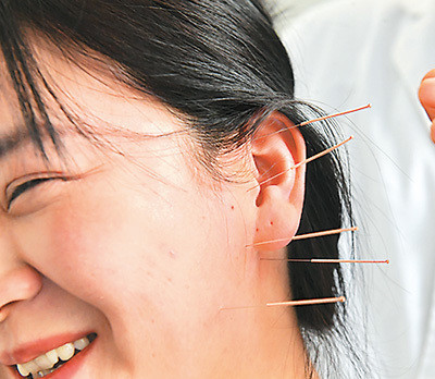 日前,在河南省夏邑县城关镇三义街社区中医馆,社区居民在进行针灸理疗。 苗育才摄(人民视觉)